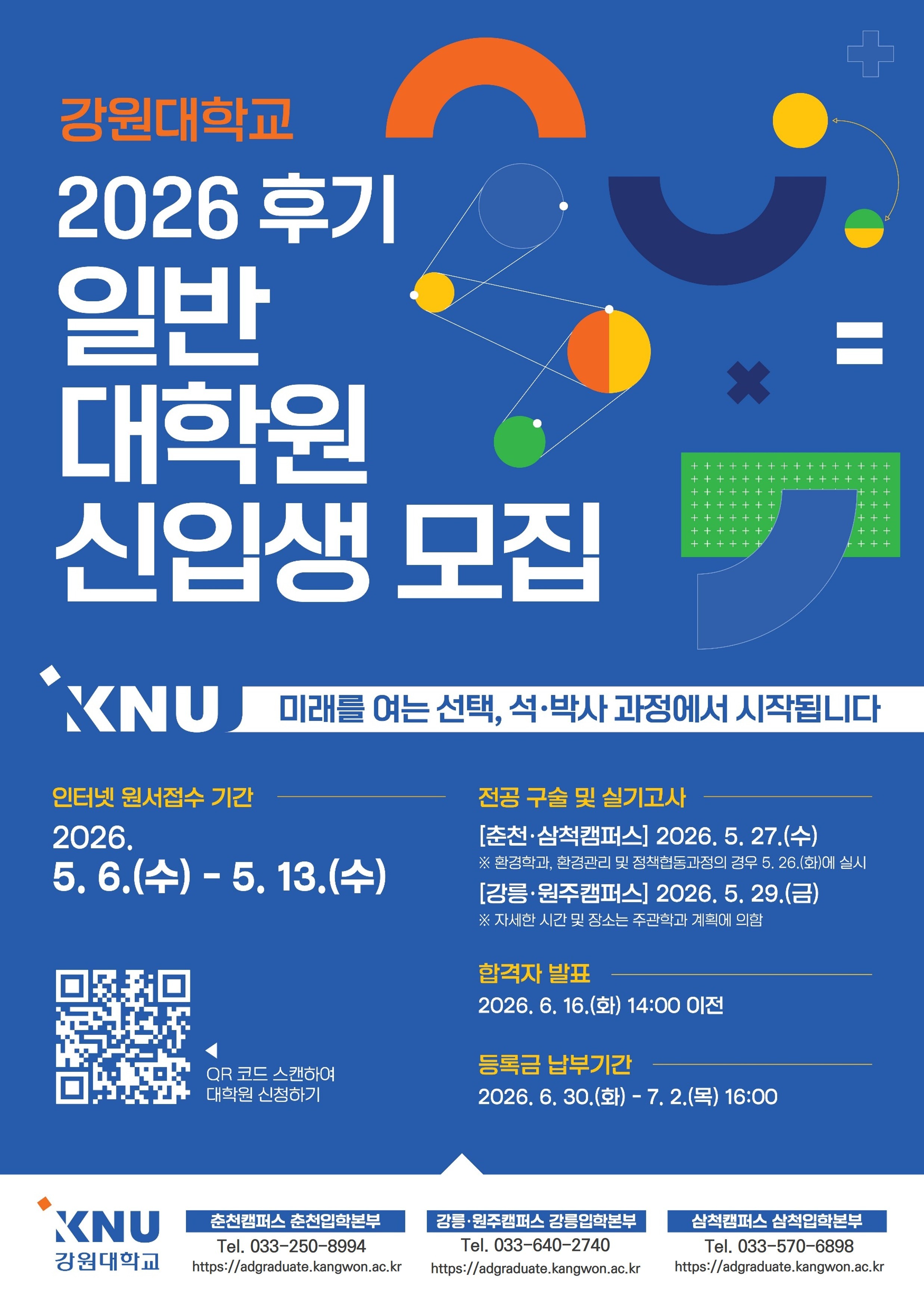 2026학년도 후기 일반대학원 강릉·원주캠퍼스 신입학 모집 안내