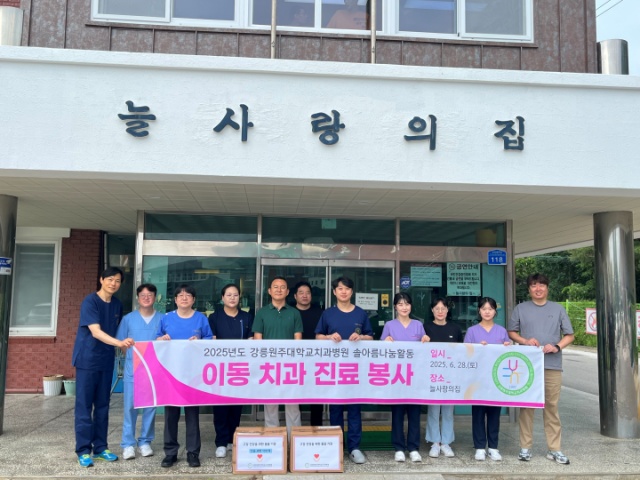강릉원주대학교치과병원(병원장 박찬진)은 지난 6월 28일(토), 강릉시 강동면에 위치한 장애인 복지 시설 '늘사랑의집'을 방문해 치과 이동진료봉사를 실시했다.