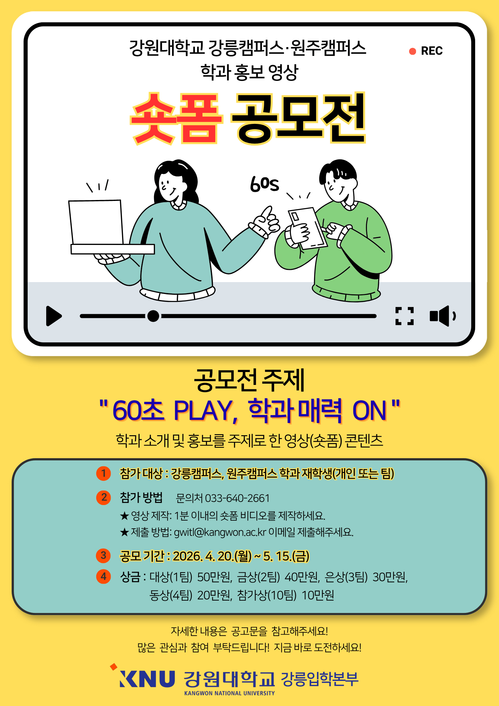 2026학년도 강원대학교 강릉·원주캠퍼스 학과 홍보 영상(숏폼) 공모전 안내