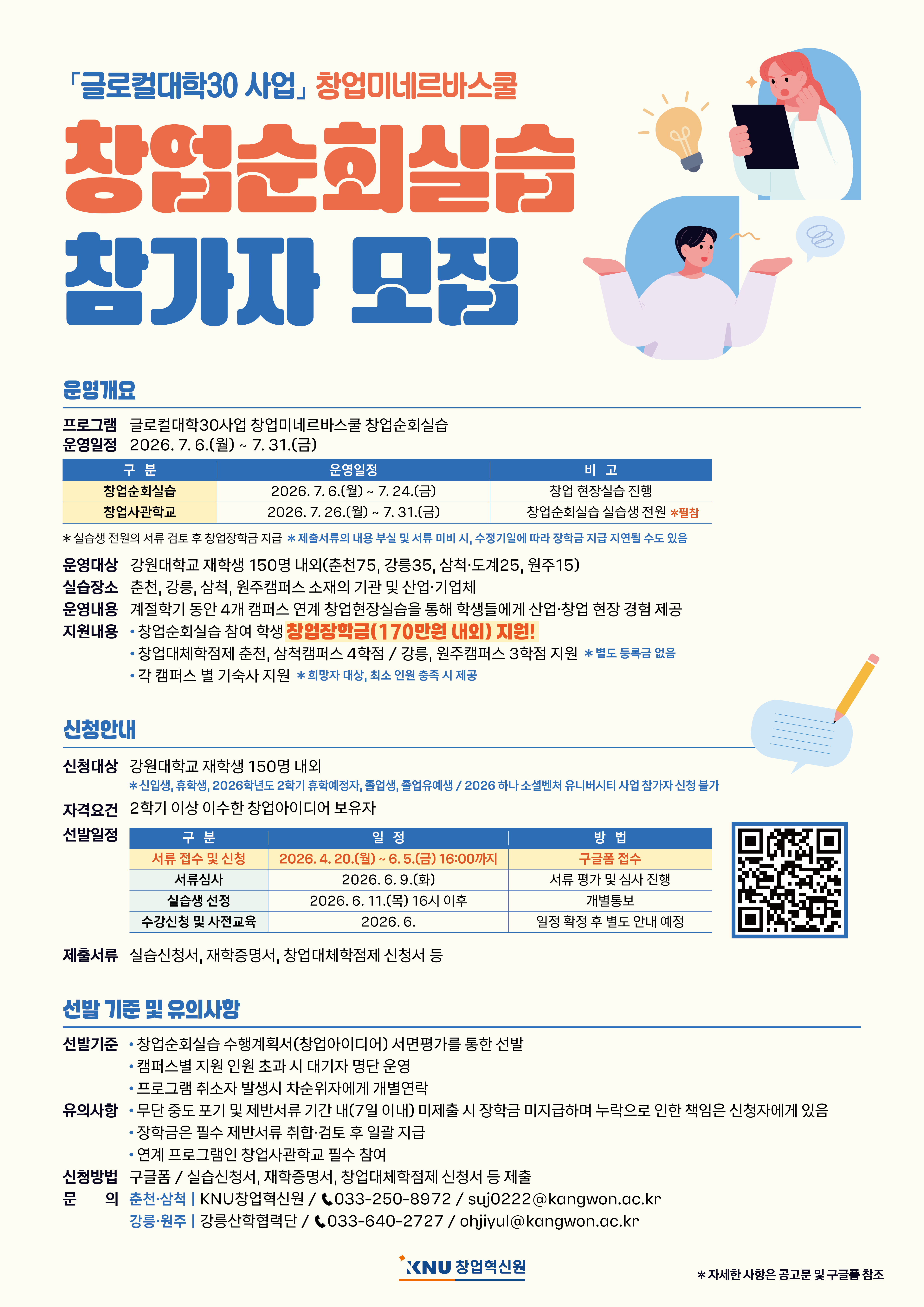 [KNU창업혁신원] 2026년 글로컬대학30사업 창업미네르바스쿨 창업순회실습 참가자 모집 홍보 협조 요청