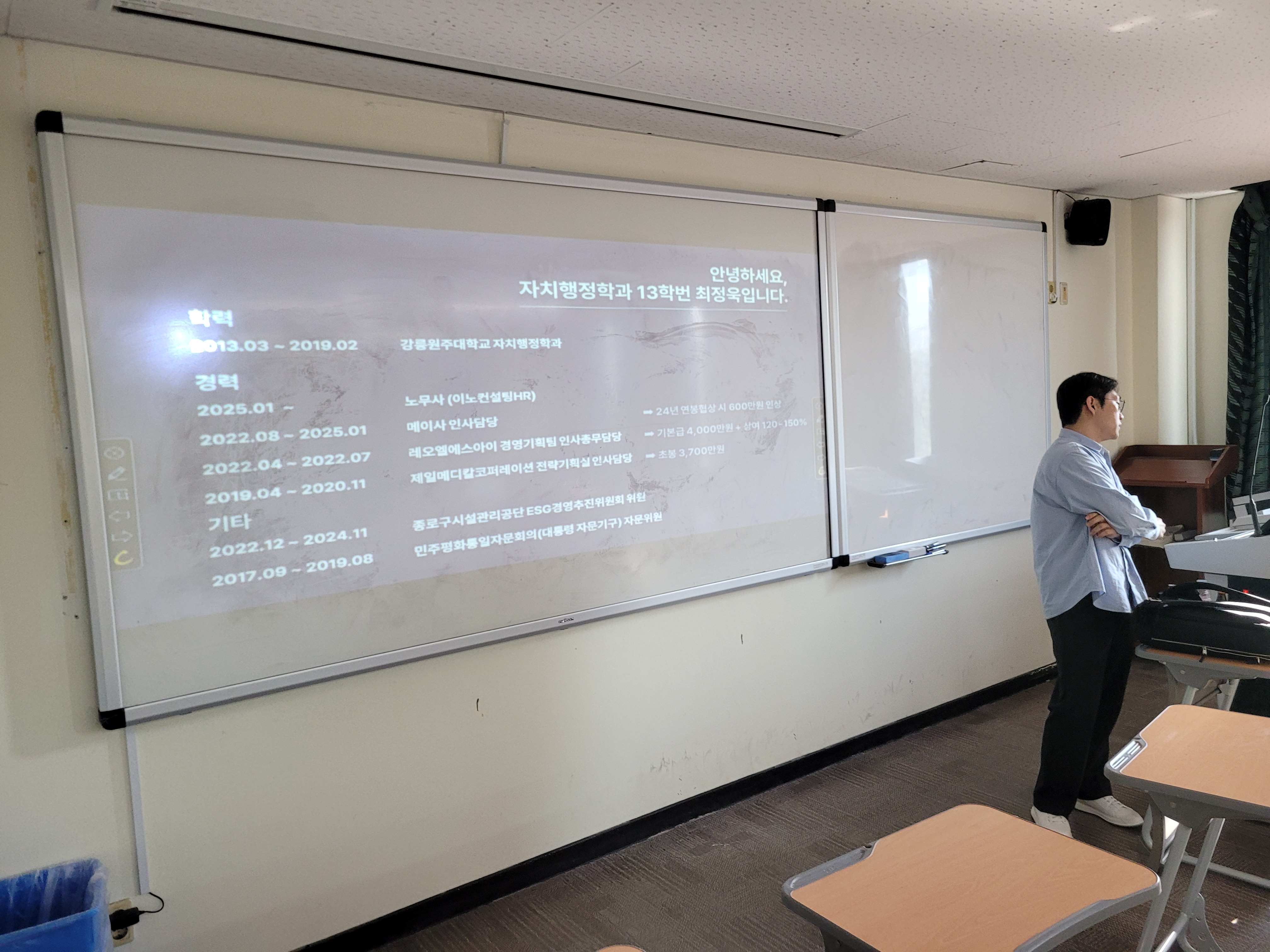 자치행정학과 13학번 졸업생 및 현재 노무사로 재직 중이신 최정욱 선생님께서,