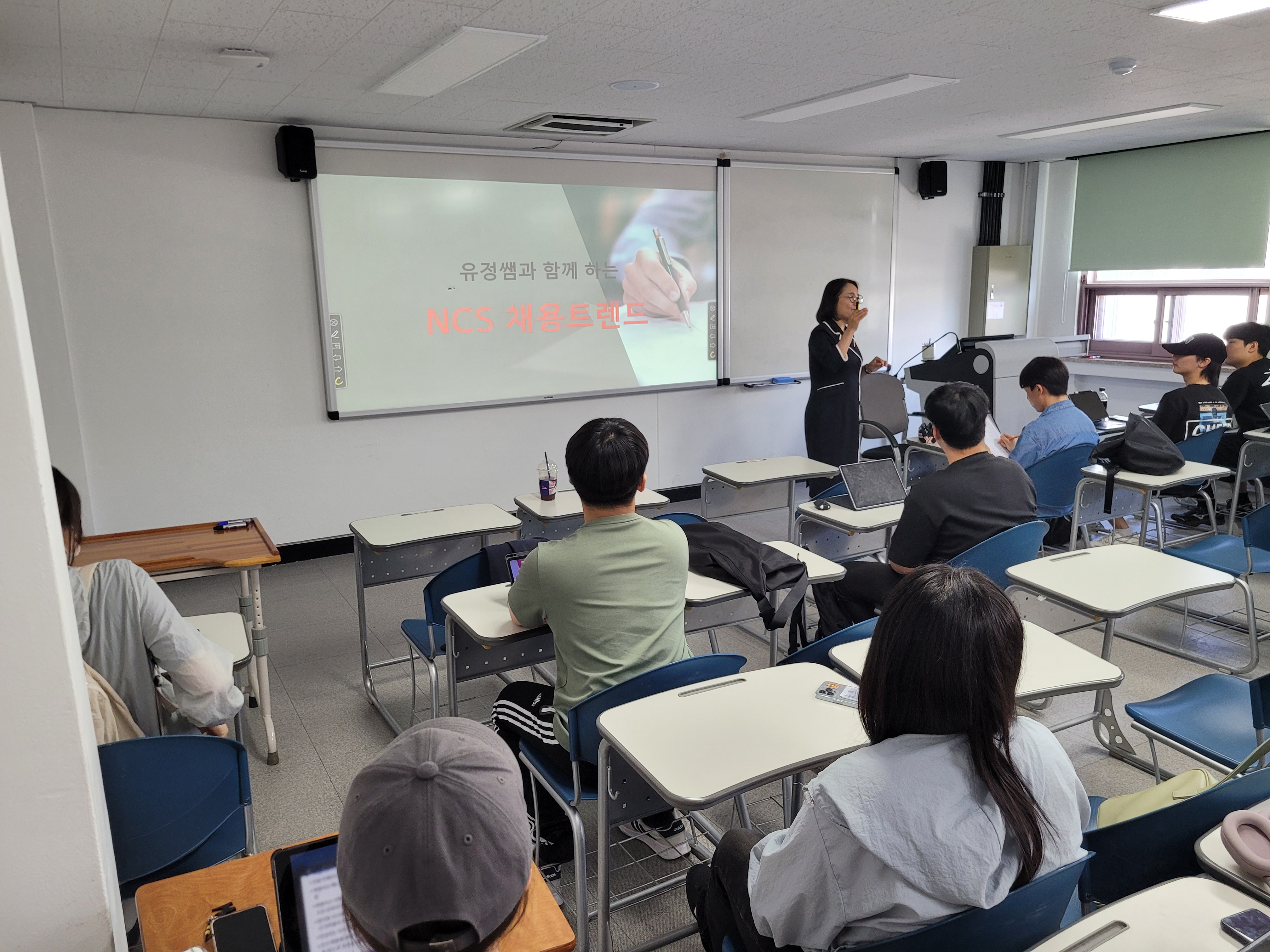 자치행정학과 학생들을 대상으로 NCS 채용 트렌드, 필기 및 면접 전략을 내용으로 한 특강을 진행하였음