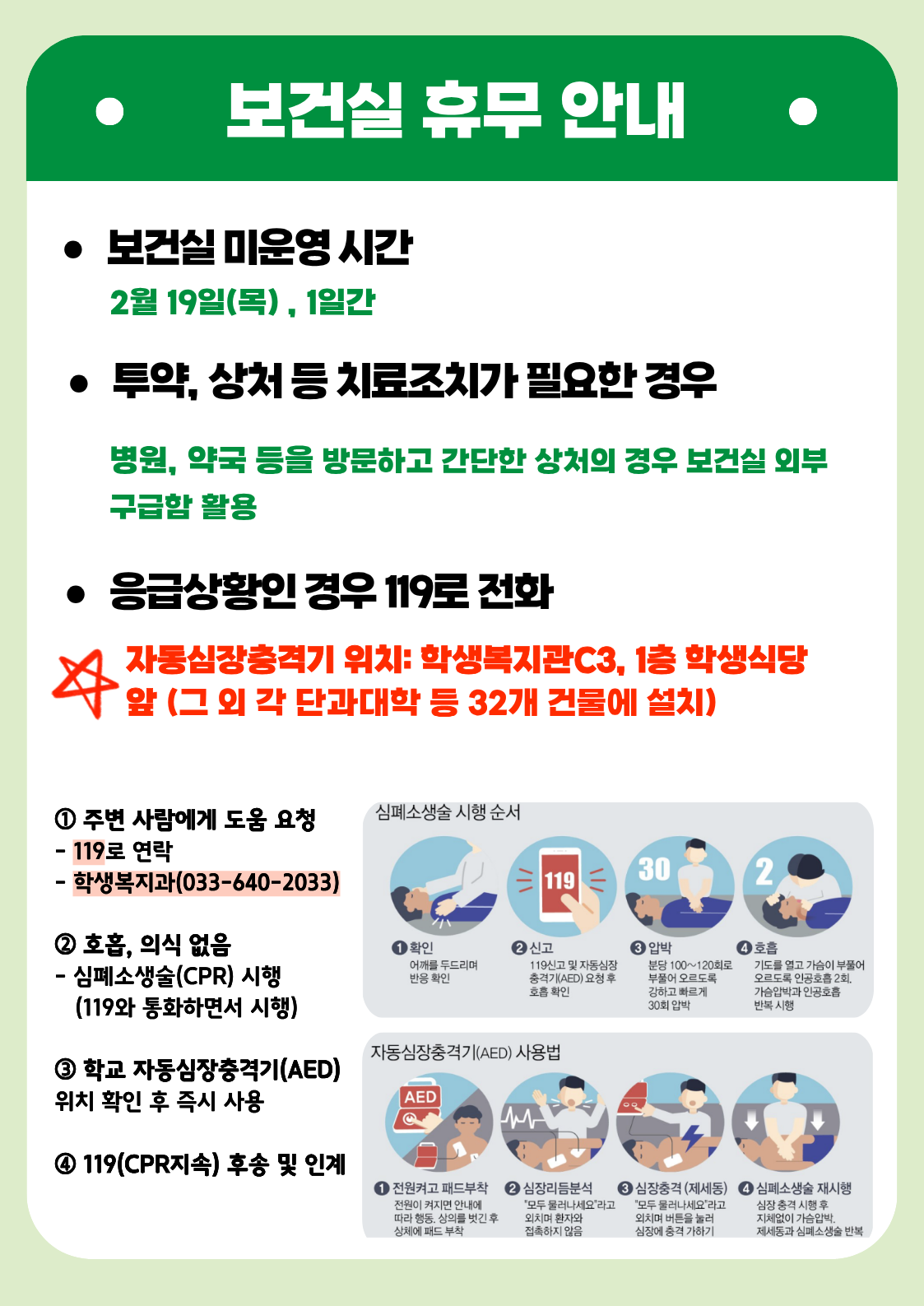[강릉] [보건] 강릉캠퍼스 보건실 휴무 알림(2026-02-19, 목)