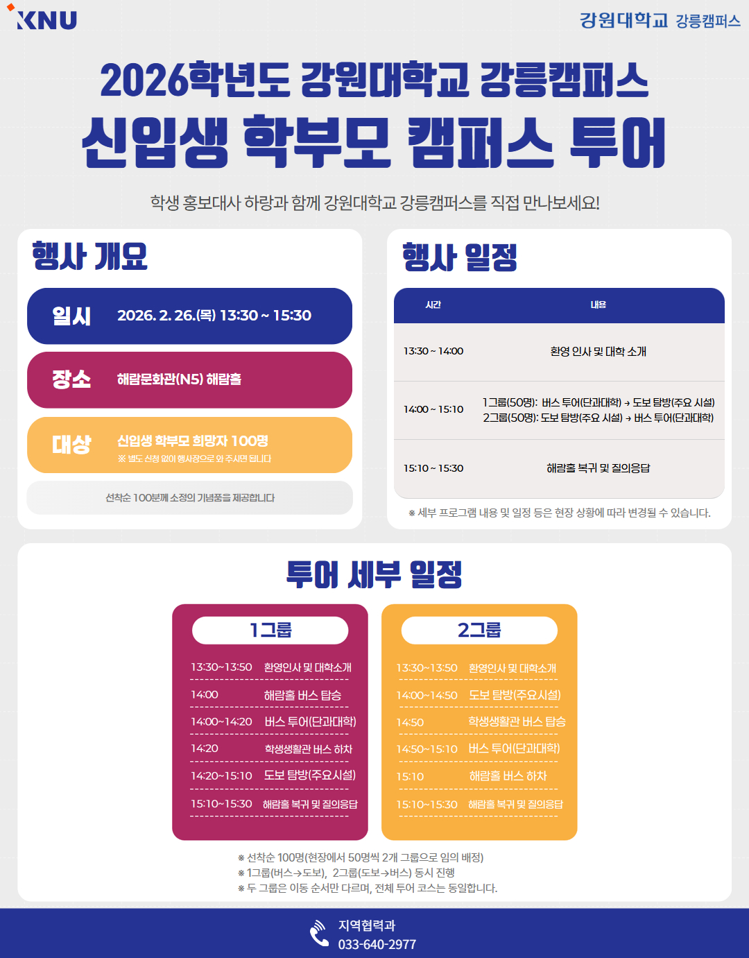 2026학년도 강원대학교 강릉캠퍼스 신입생 학부모 캠퍼스 투어