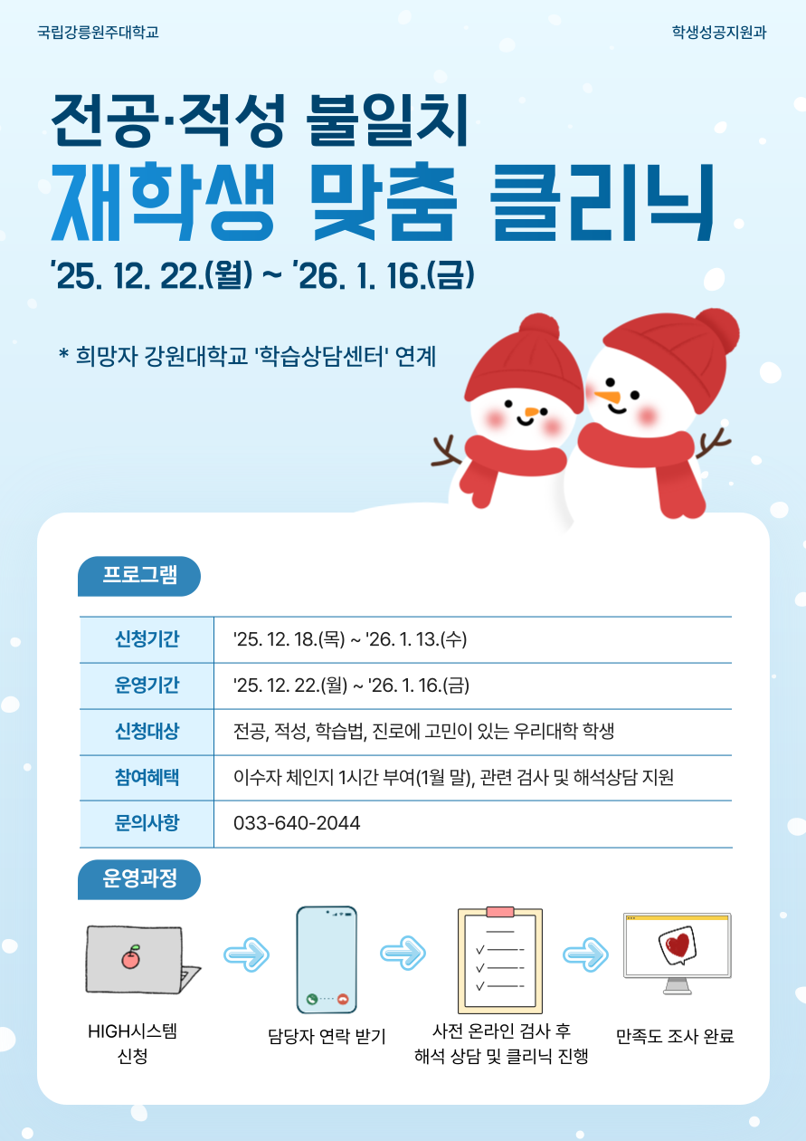 [학생성공지원과] 전공·적성 불일치 재학생 맞춤 클리닉(12월)