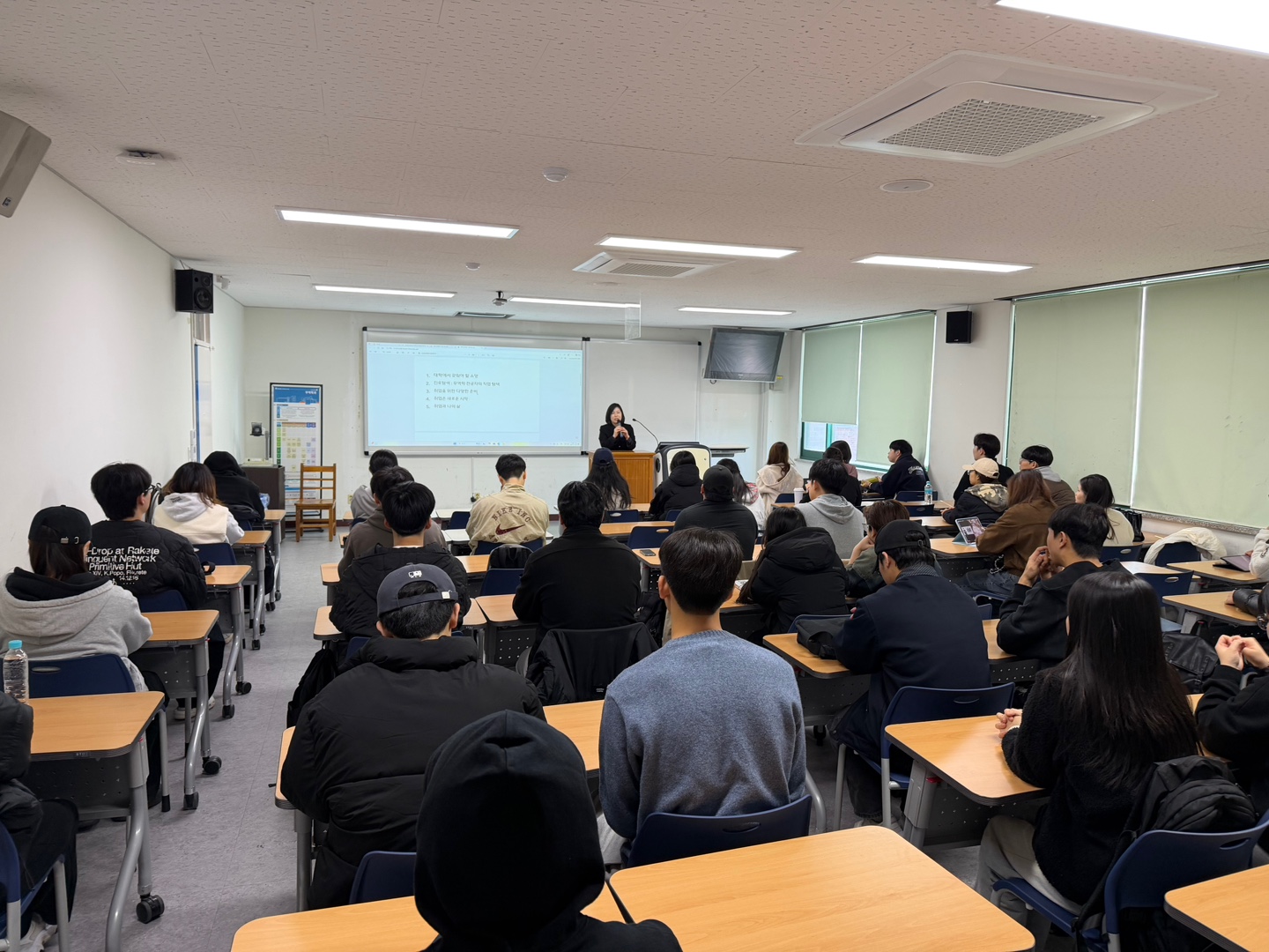 무역학과 재학생들을 위해 대학생활과 나의 길이라는 주제로 특강을 진행하셨습니다.