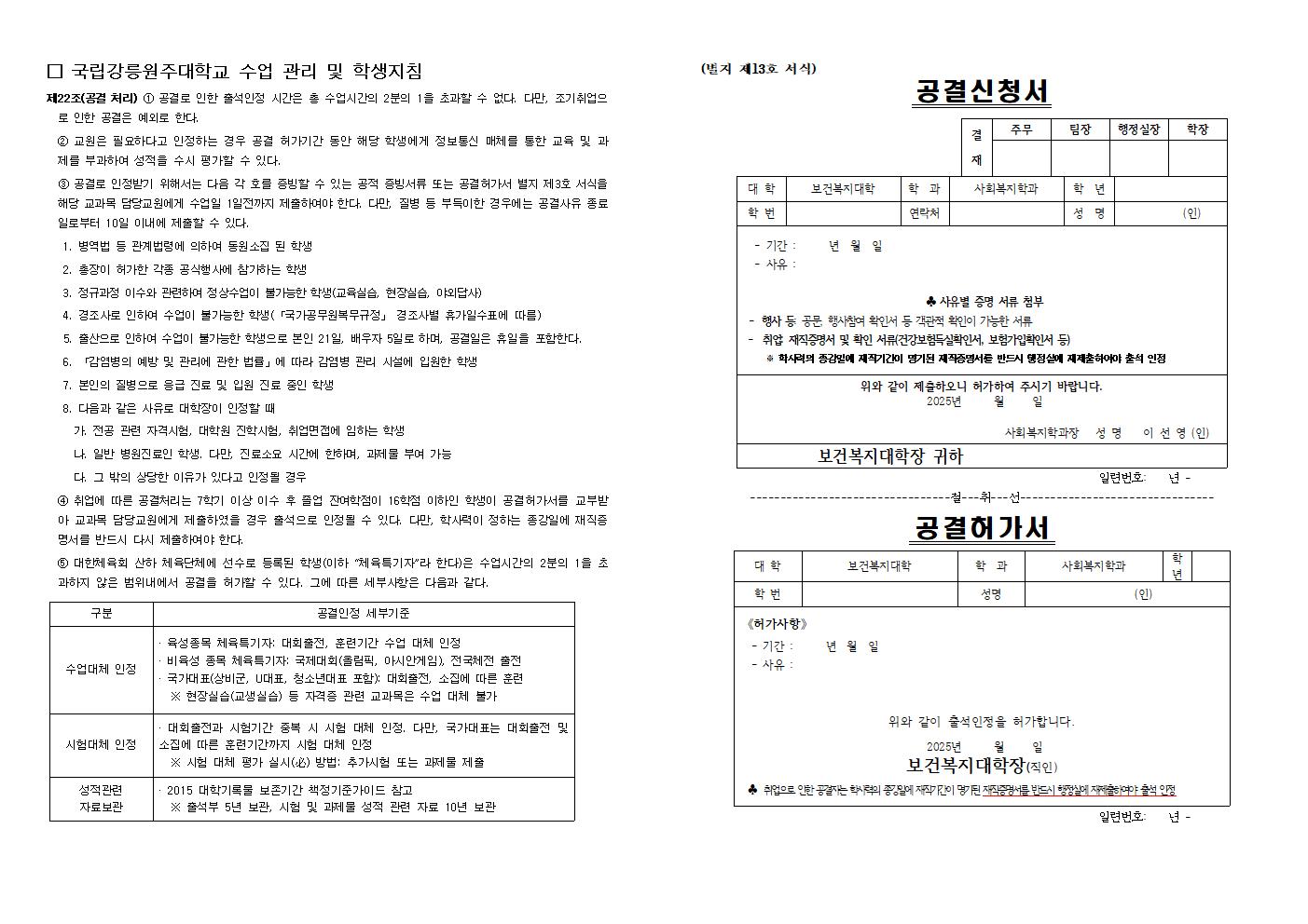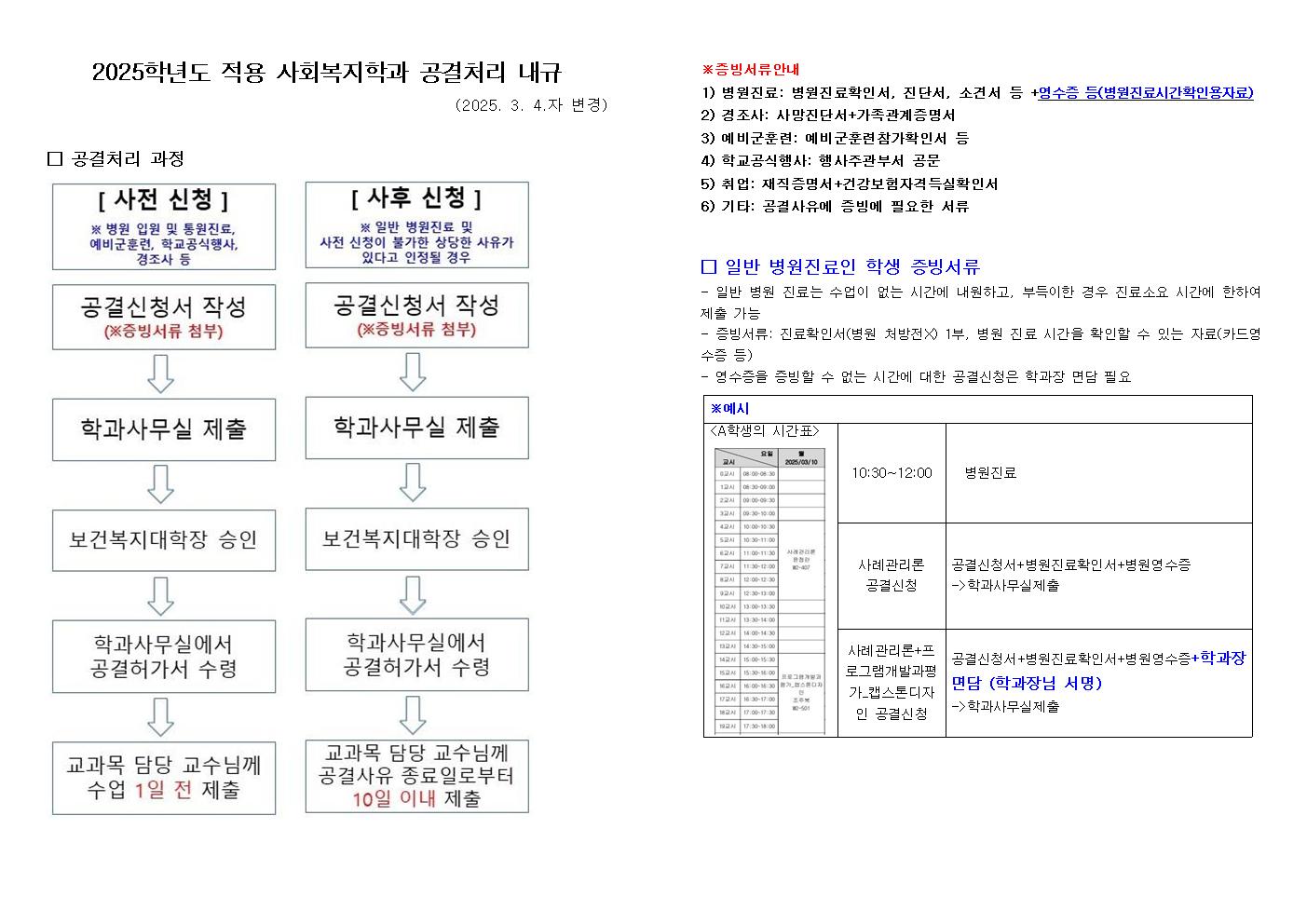2025학년도 적용 사회복지학과 공결처리(2025.3.4.적용)