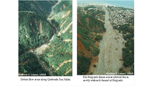 또한 집중호우로 인한 토석류 발생을 관측하고 실험수로를 통해 재연하여 토석류의 흐름 유동과 영향범위 등을 데이터화하고 예측하기 위한 연구를 하고 있습니다.