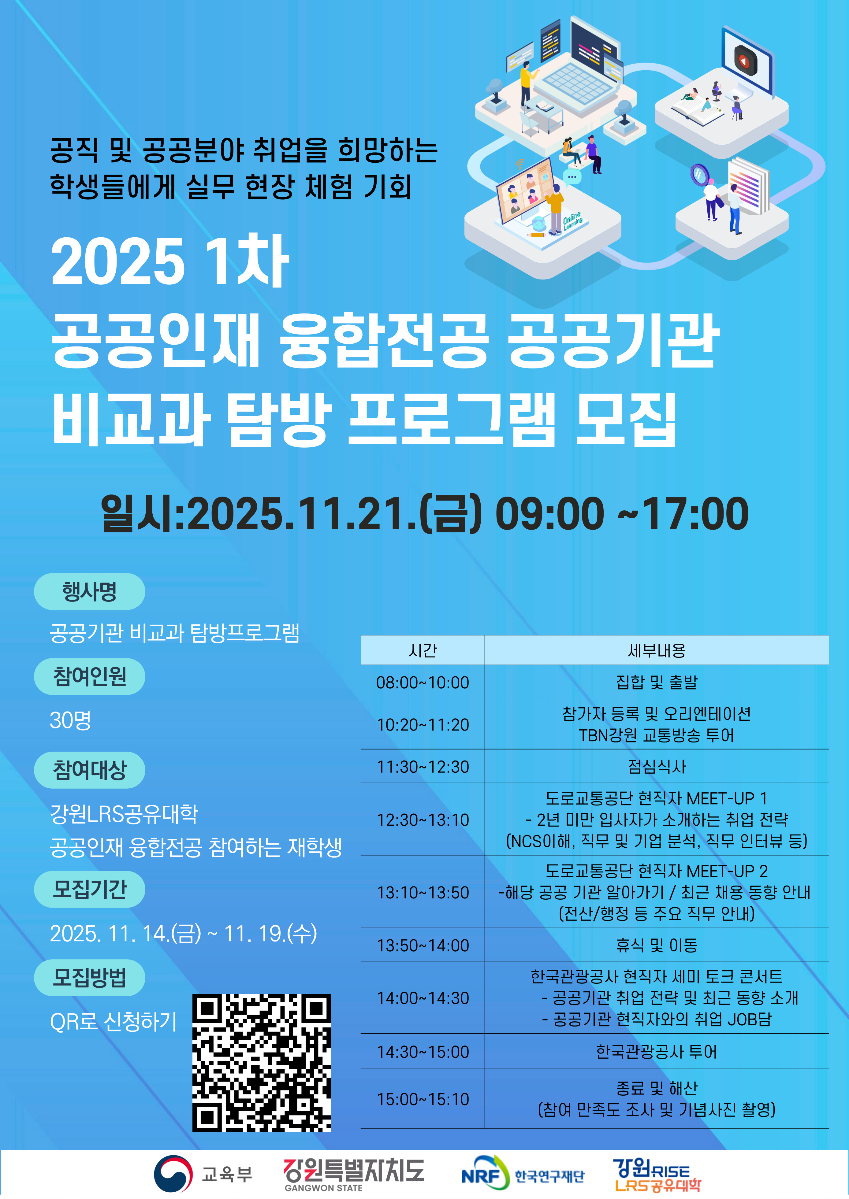 [강원LRS공유대학] 2025학년도 1차 공공인재 융합전공 공공기관 비교과 탐방 프로그램 모집 안내
