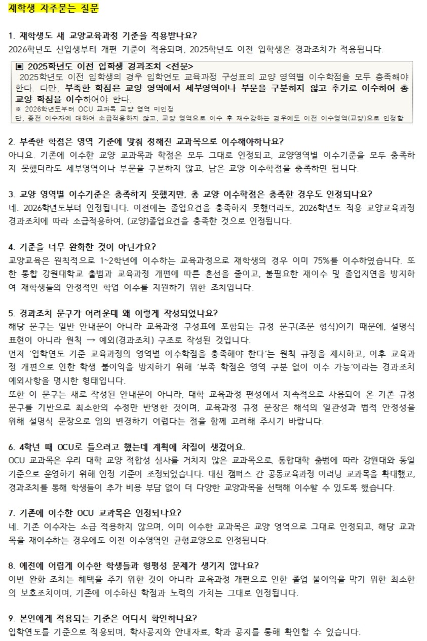 2026학년도 교양교육과정 개편 - 경과조치 관련 안내