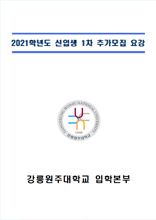 2026학년도 추가모집요강 1차 추가 원서접수 : 2026.2.20.(금)10:00~2.25(수)10:00까지 2차 추가 원서접수 : 2026.2.25.(수)16:00~2.26.(목)14:00까지 접수방법 : 인터넷 원서접수 * 3차 추가모집은 1차 및 2차 추가모집 미충원 시 실시 예정 바로보기 다운로드 Kangwon National University 2026 Kangwon National University 2025 2025학년도 신입생 1차 추가모집 요강 바로보기 다운로드 Kangwon National University 2024 2024학년도 신입생 1차 추가모집 요강 바로보기 다운로드 Kangwon National University 2023 2023학년도 신입생 1차 추가모집 요강 바로보기 다운로드 Kangwon National University 2022 2022학년도 신입생 1차 추가모집 요강 바로보기 다운로드 Kangwon National University 2021 2021학년도 신입생 1차 추가모집 요강 바로보기 다운로드 Kangwon National University 2021 2021학년도 신입생 2차 추가모집 요강 바로보기 다운로드 Kangwon National University 2021 2021학년도 신입생 3차 추가모집 요강 바로보기 다운로드
