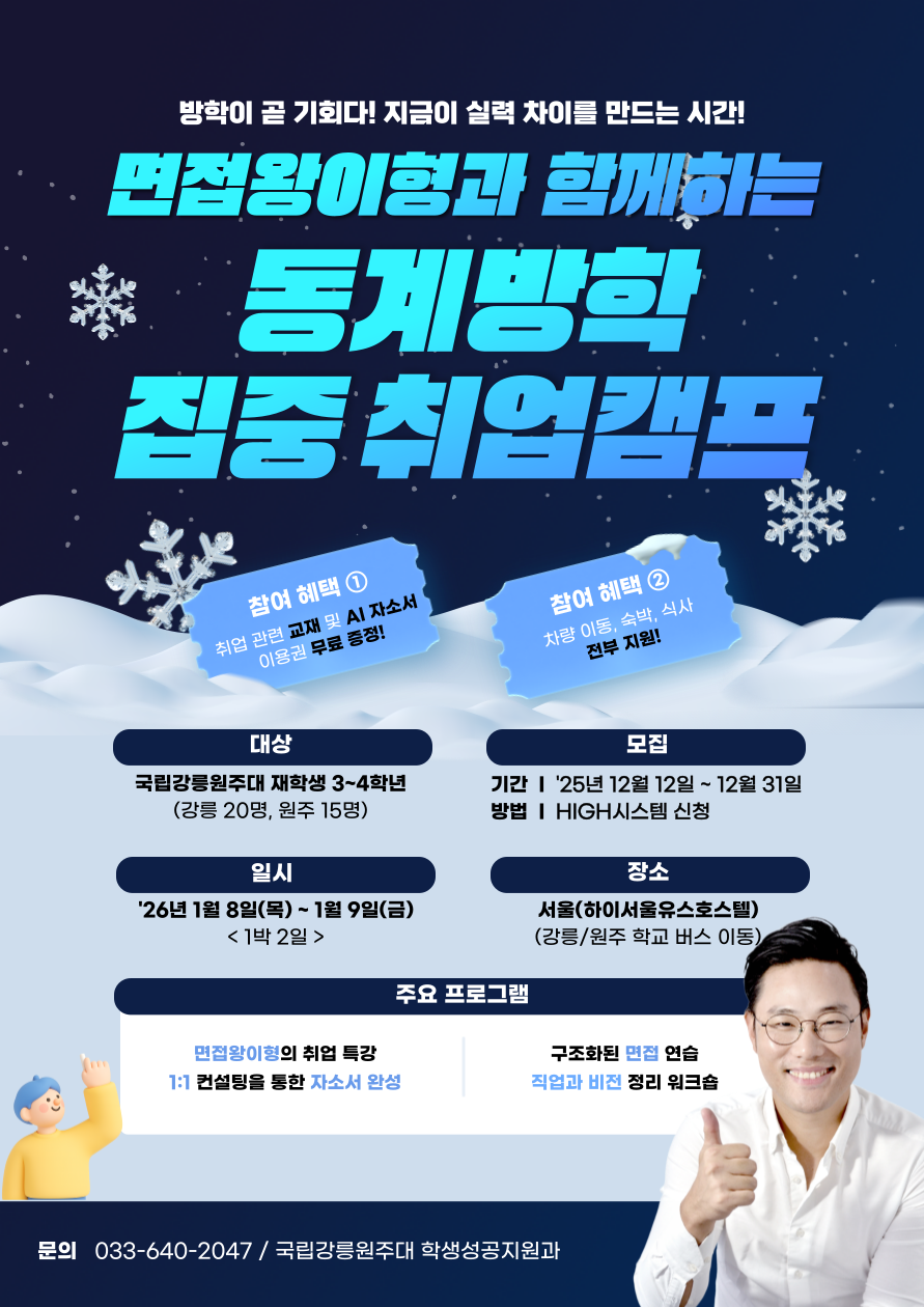 fnctId=bbs,fnctNo=871 [학생성공지원과] 「면접왕이형과 함께하는 동계방학 집중 취업캠프」 작성일 2025.12.15 작성자 최지은 조회수 1270 첨부파일 첨부파일이(가) 없습니다.