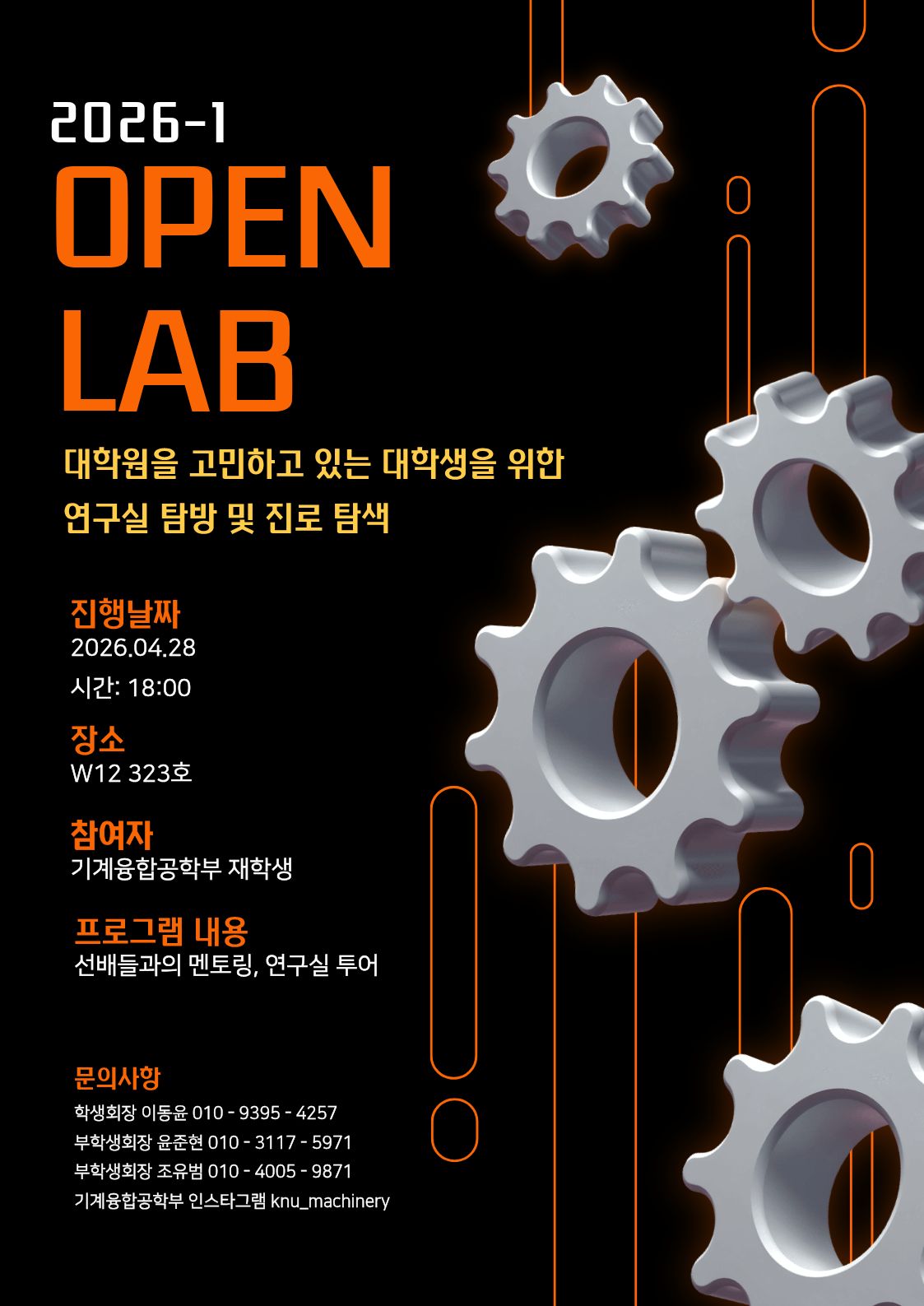 fnctId=bbs,fnctNo=871 [기계융합공학부] 2026학년도 1학기 기계융합공학부 Open Lab 개최 작성일 2026.04.06 작성자 최지은 조회수 362 첨부파일 첨부파일이(가) 없습니다.