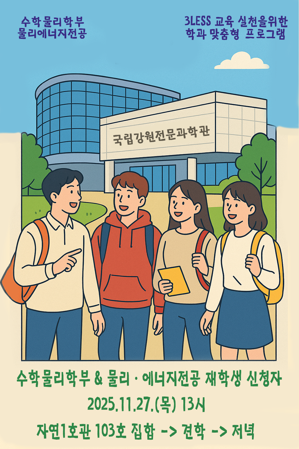이번 행사는 수학물리학부&수학물리학부 물리에너지전공 재학생을 대상으로 "국립강원전문과학관 견학"이 진행되었다.