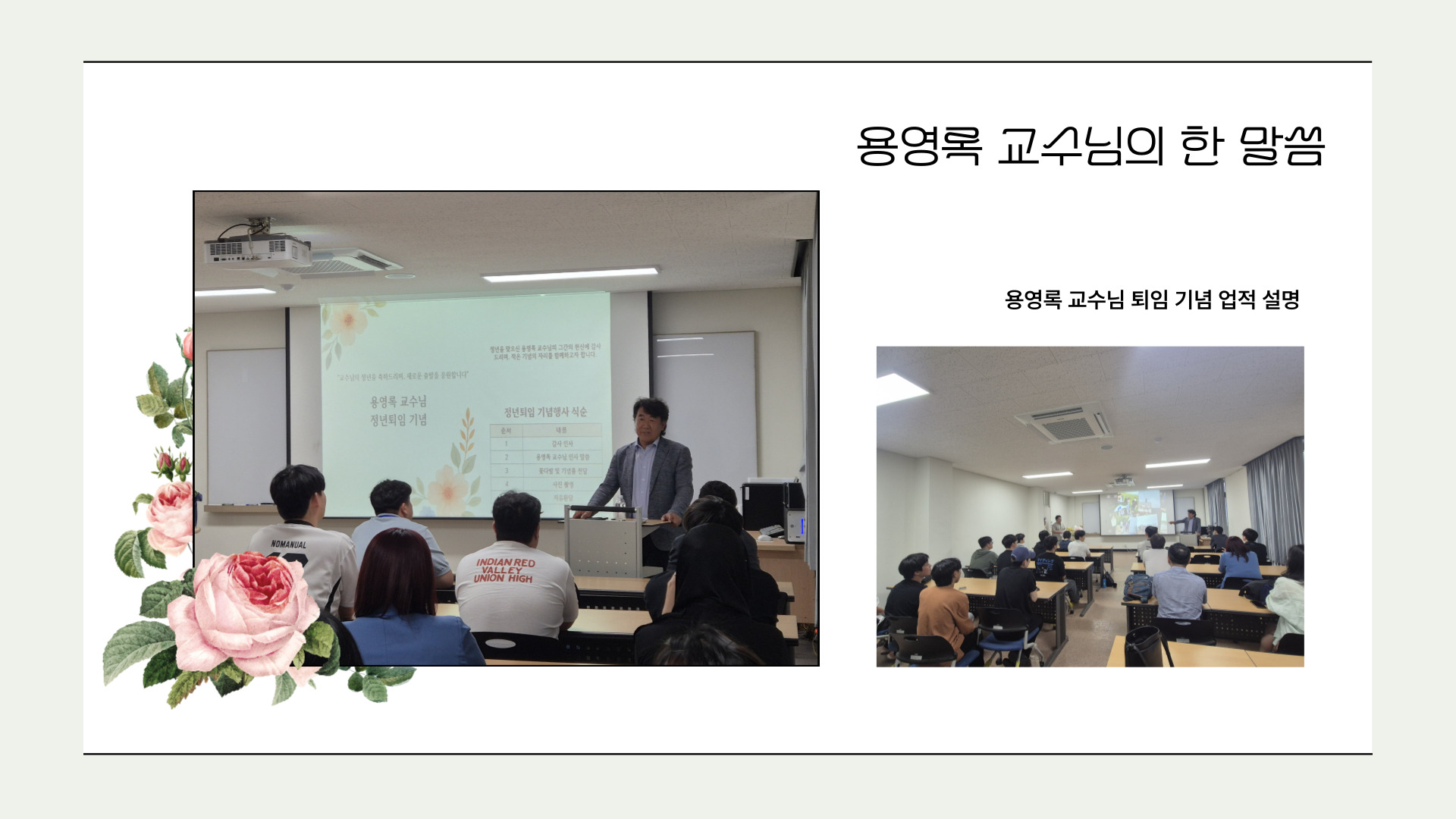 fnctId=bbs,fnctNo=772 06.18.(수) 용영록교수님 퇴임식 글번호 305601 작성일 2025.06.20 작성자 오경해 조회수 3021 ' 첨부파일 첨부파일이(가) 없습니다.