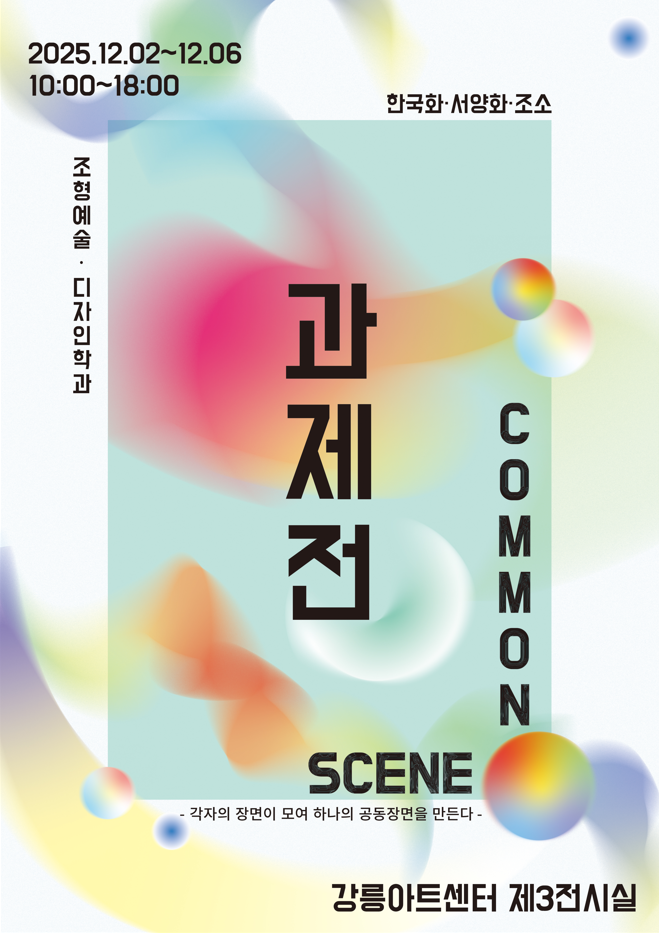 [학과 전시]2025 조형예술·디자인학과 과제전 (한국화, 서양화, 조소) COMMON SCENE✦ 2025 조형예술 디자인학과 과제전 - COMMON SCENE ✦장 소 | 강릉아트센터 일 시 | 2025.12.02.(화) 12.06.(토) / 10:00 18:2025.12.03