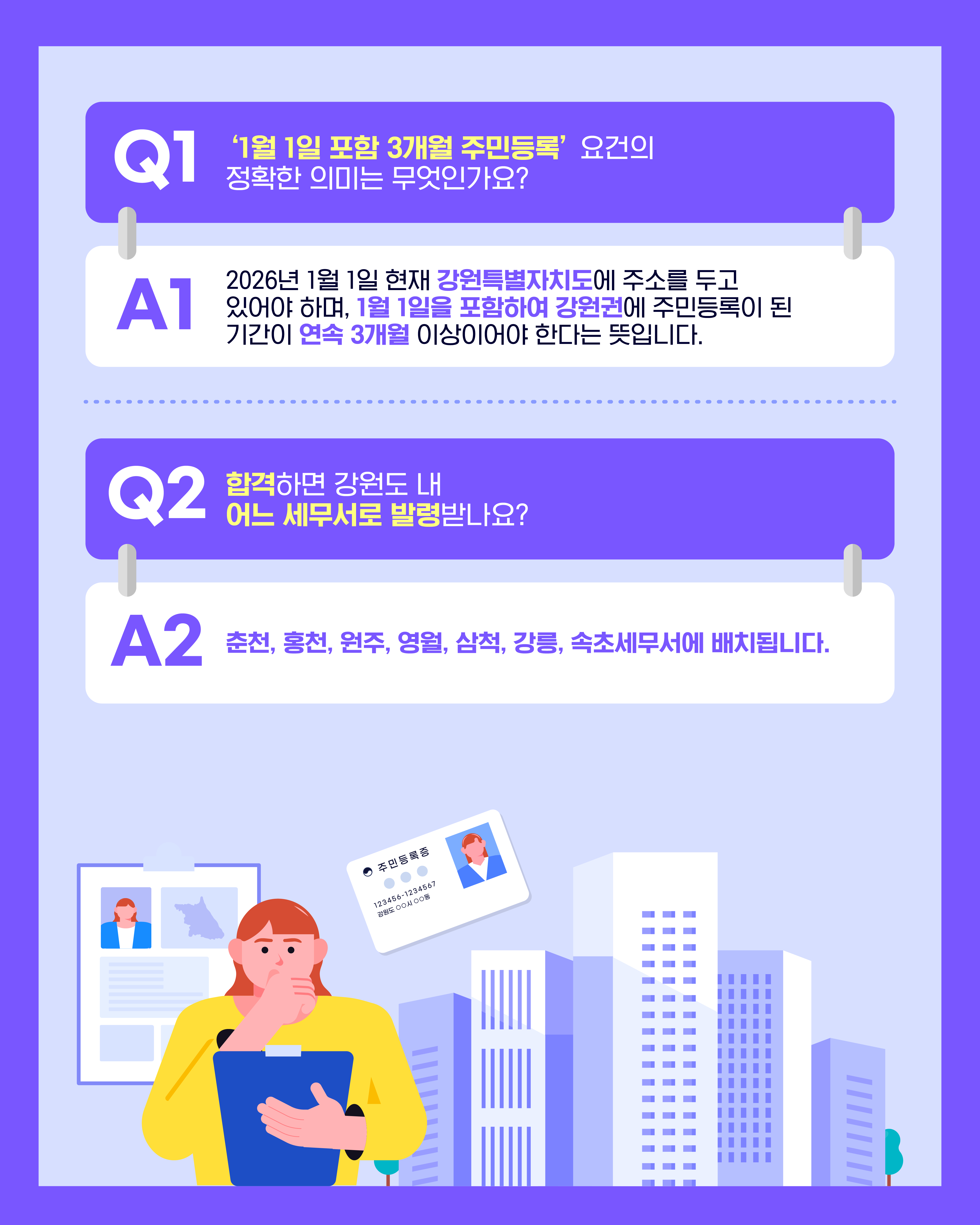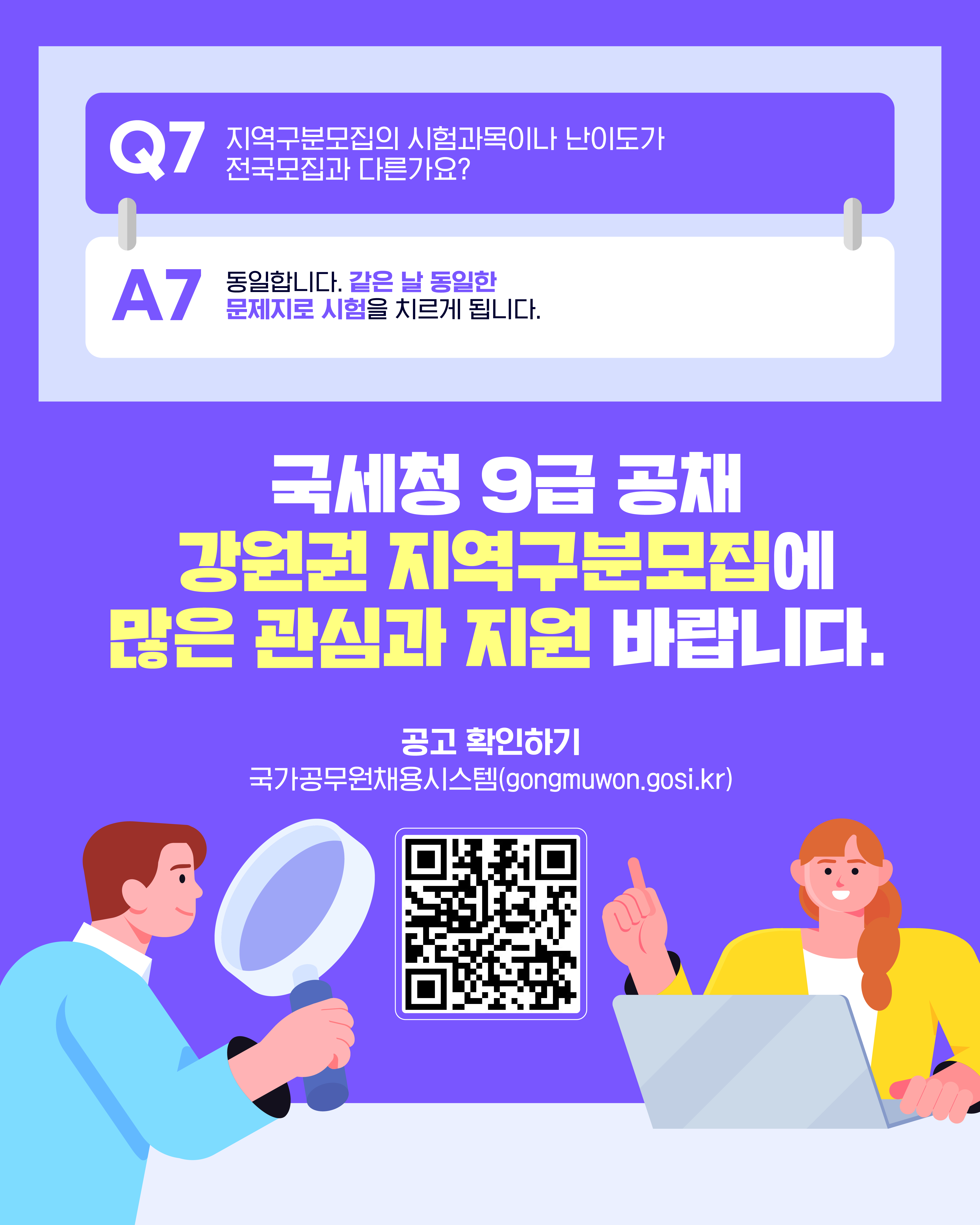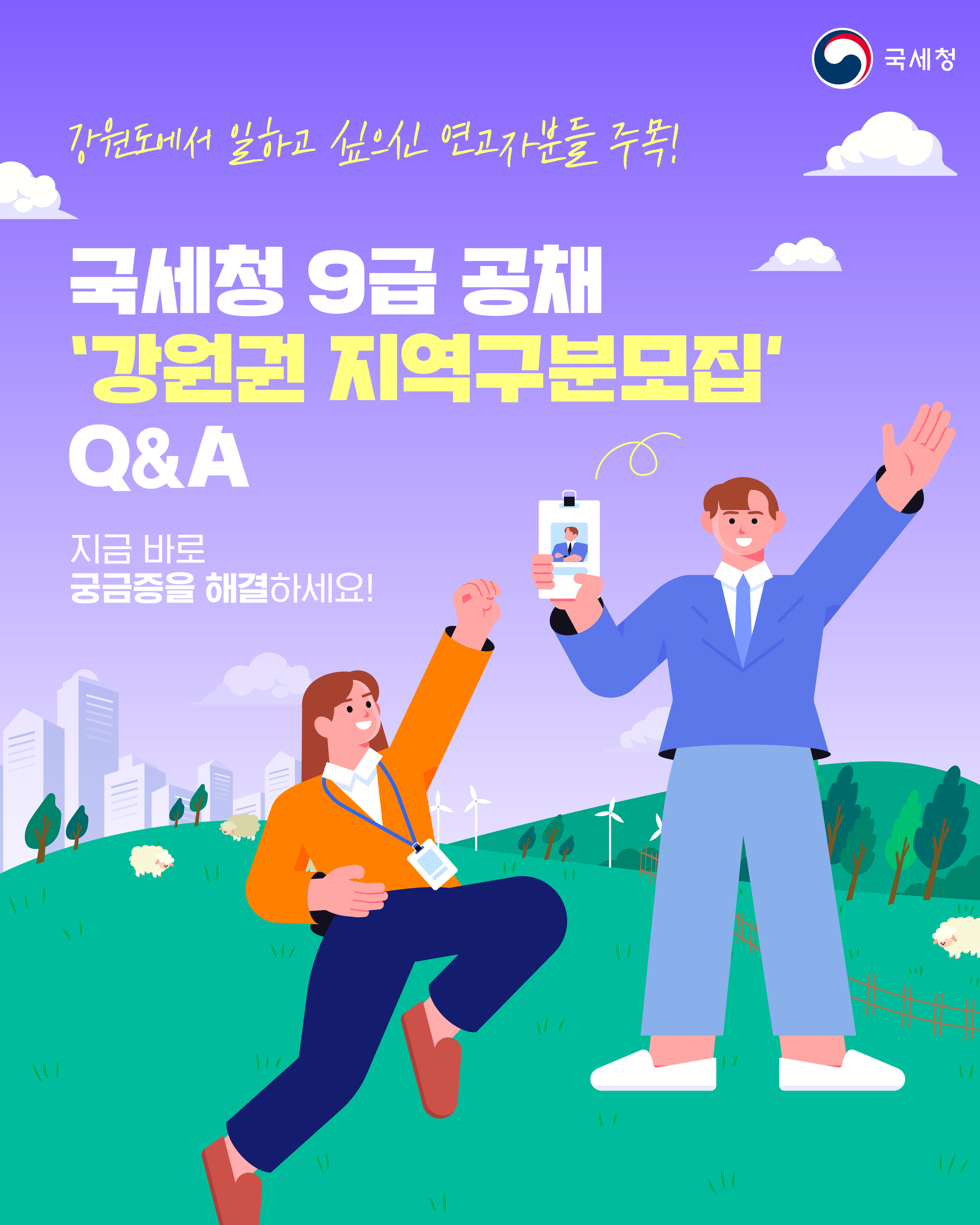 fnctId=bbs,fnctNo=1046 국세청 9급 공채 강원도 지역구분 모집 안내 작성일 2026.01.19 작성자 학생성공지원과 조회수 1464 첨부파일 첨부파일이(가) 없습니다.